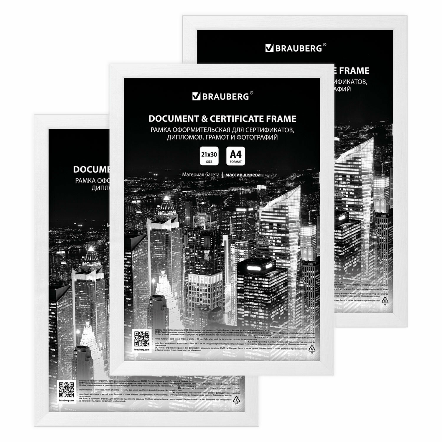 Рамка для фото, фоторамка 21х30 см для фотографий, картин на стену с небьющимся стеклом набор 3 штуки, багет 14 мм дерево, белая, Brauberg, 391355 информация: