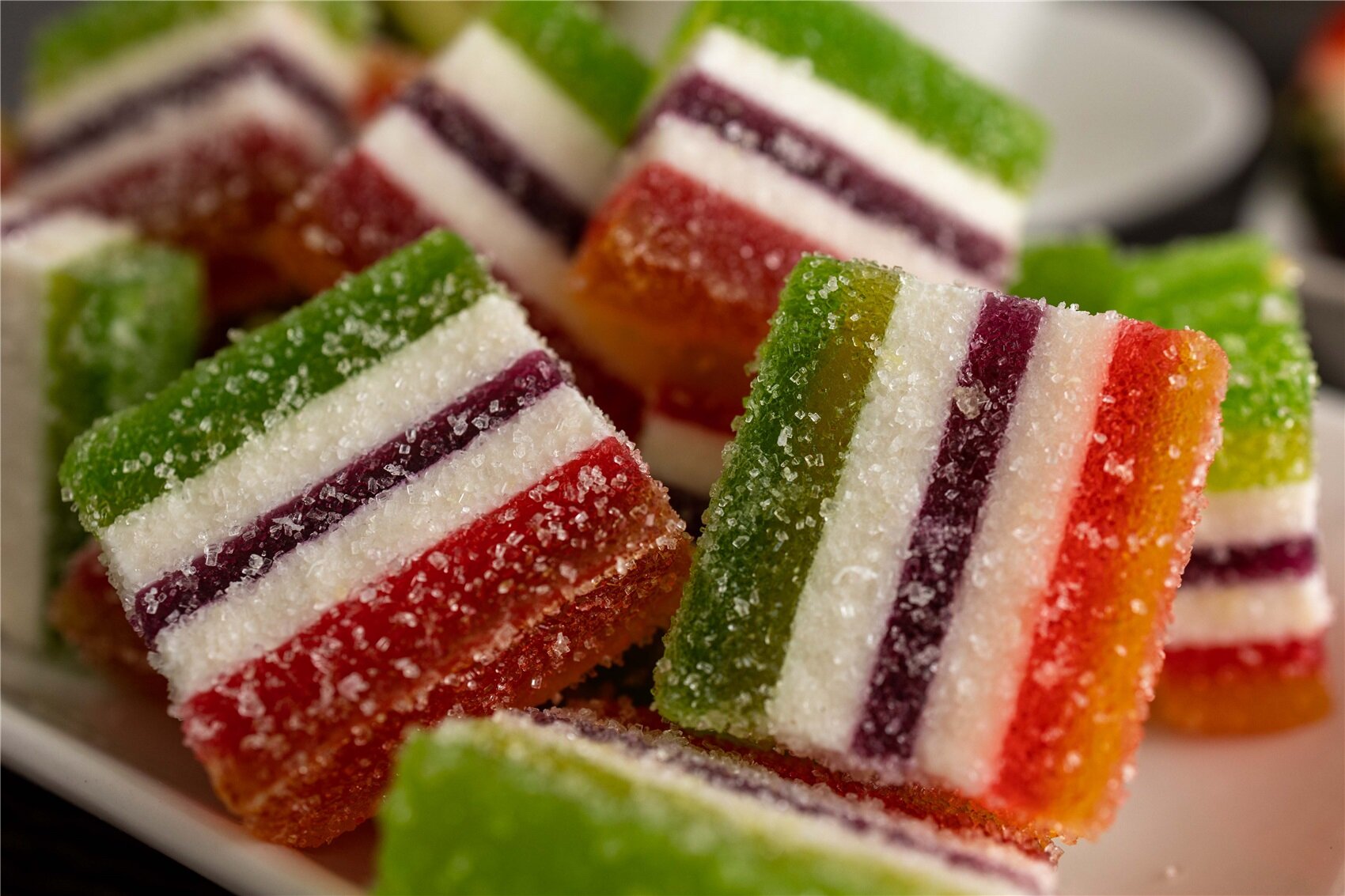 | Состав | Сахар, патока крахмальная, желирующий агент - агар, регулятор кислотности - лимонная кислота, сухой яичный белок, ароматизаторы пищевые, красители пищевые - "Аннато" , "Фруттокол желтый", " Биокол Хлорофилл ", " Черная смородина", "Фруттокол розовый" |