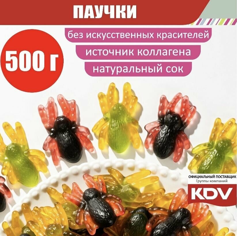 Мармелад KDV KrutFrut (КрутФрут) Пауки жевательный со вкусами клубники и ананаса, манго и абрикоса, 500 г