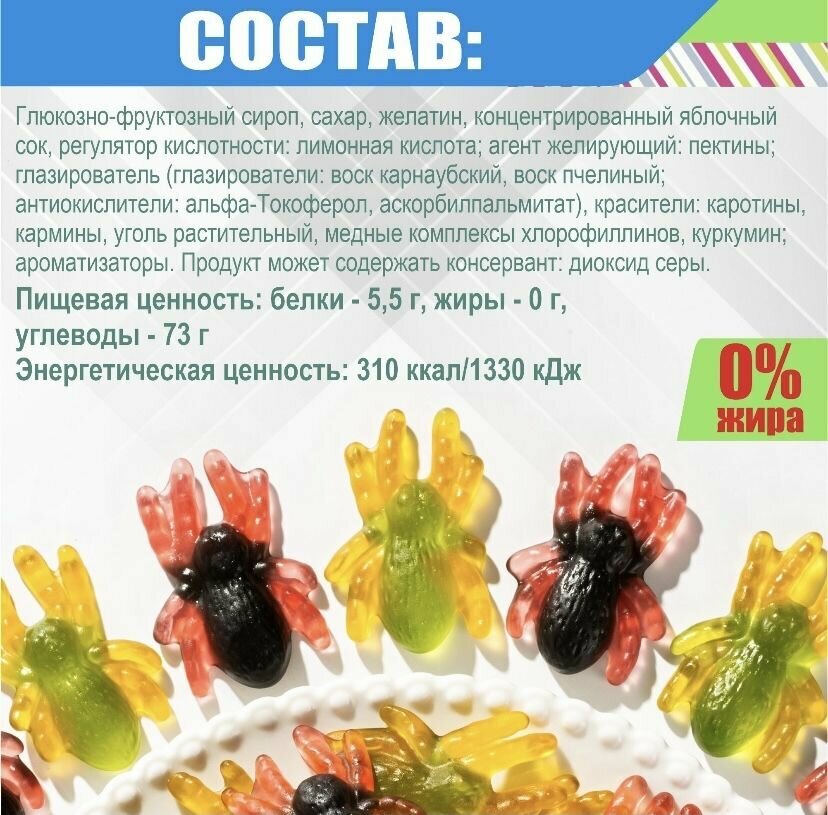 | Состав | желатин, сахар, глюкозно-фруктозный сироп |