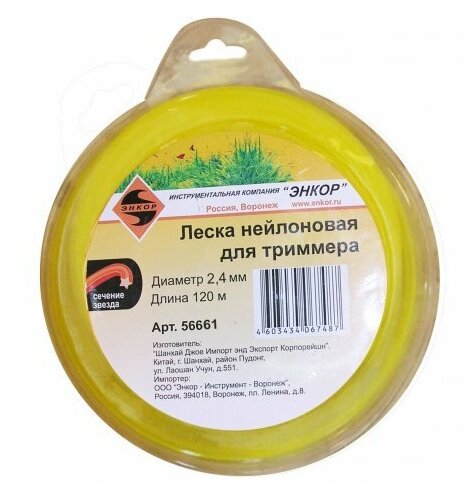 Леска для триммеров (2,4 мм; 120 м) сечение звезда Энкор 56661 информация: