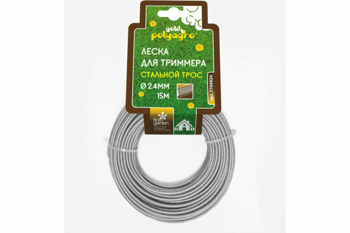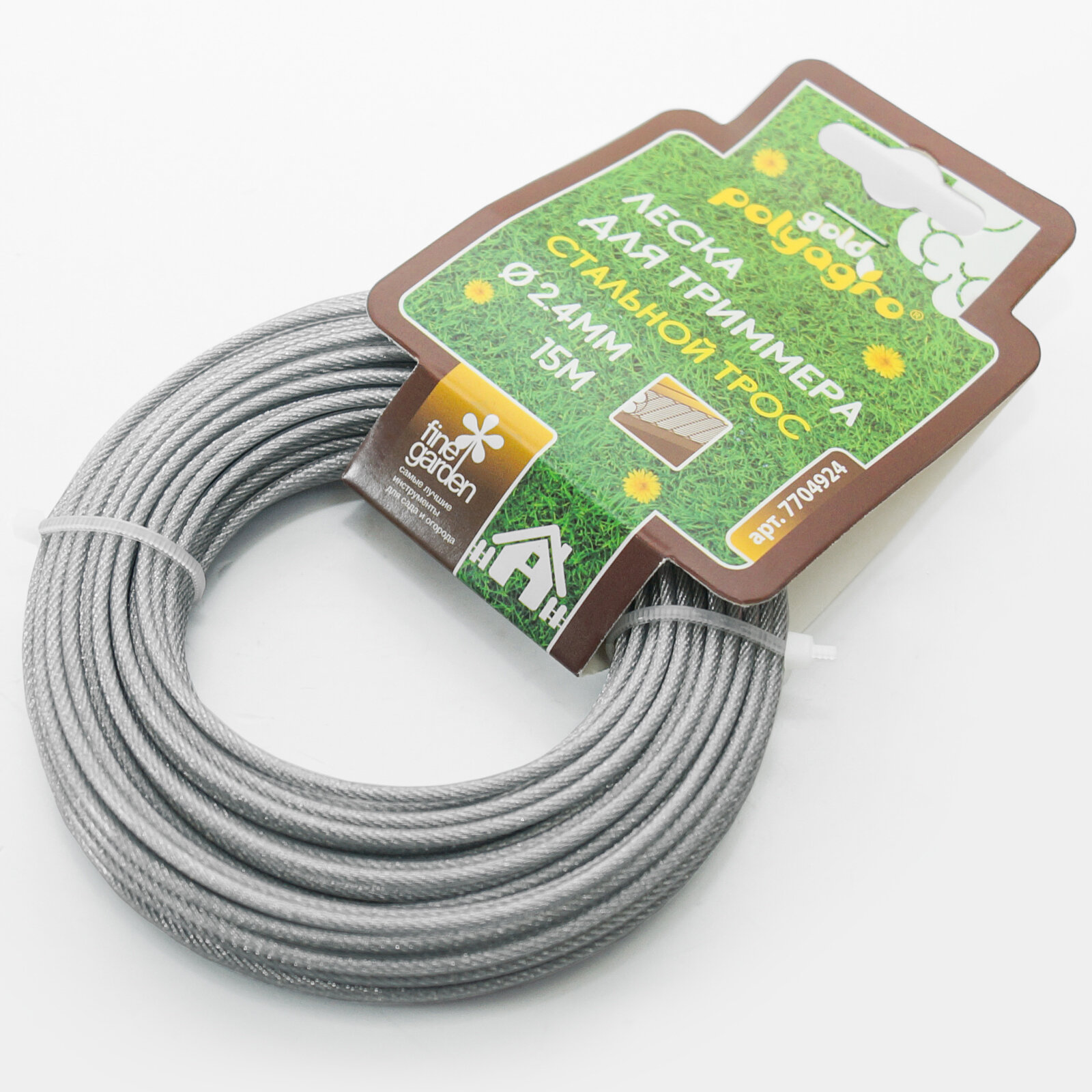 10 цен на Леска для триммера стальной трос 2,4мм х 15м Polyagro