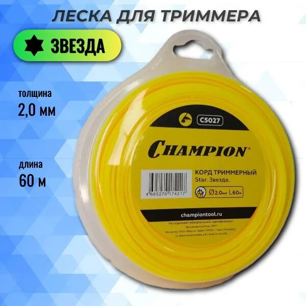 Корд триммерный CHAMPION Star 2.0мм* 60м (звезда) 520 ₽