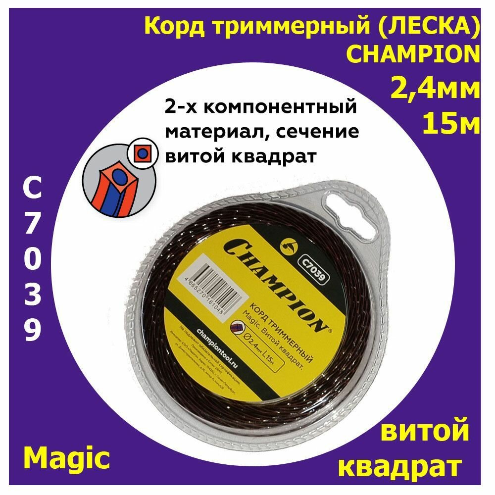 Корд триммерный (леска) CHAMPION Magic 2.4 мм*15 м (витой квадрат) C7039 информация: