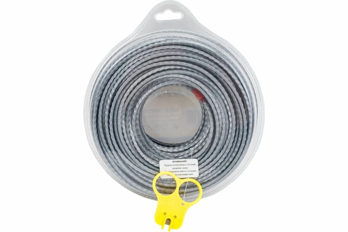 Корд триммерный CHAMPION 3 мм, витой квадрат. Леска для триммера Magic. Струна для косы или газонокосилки в мотке + нож. C7043