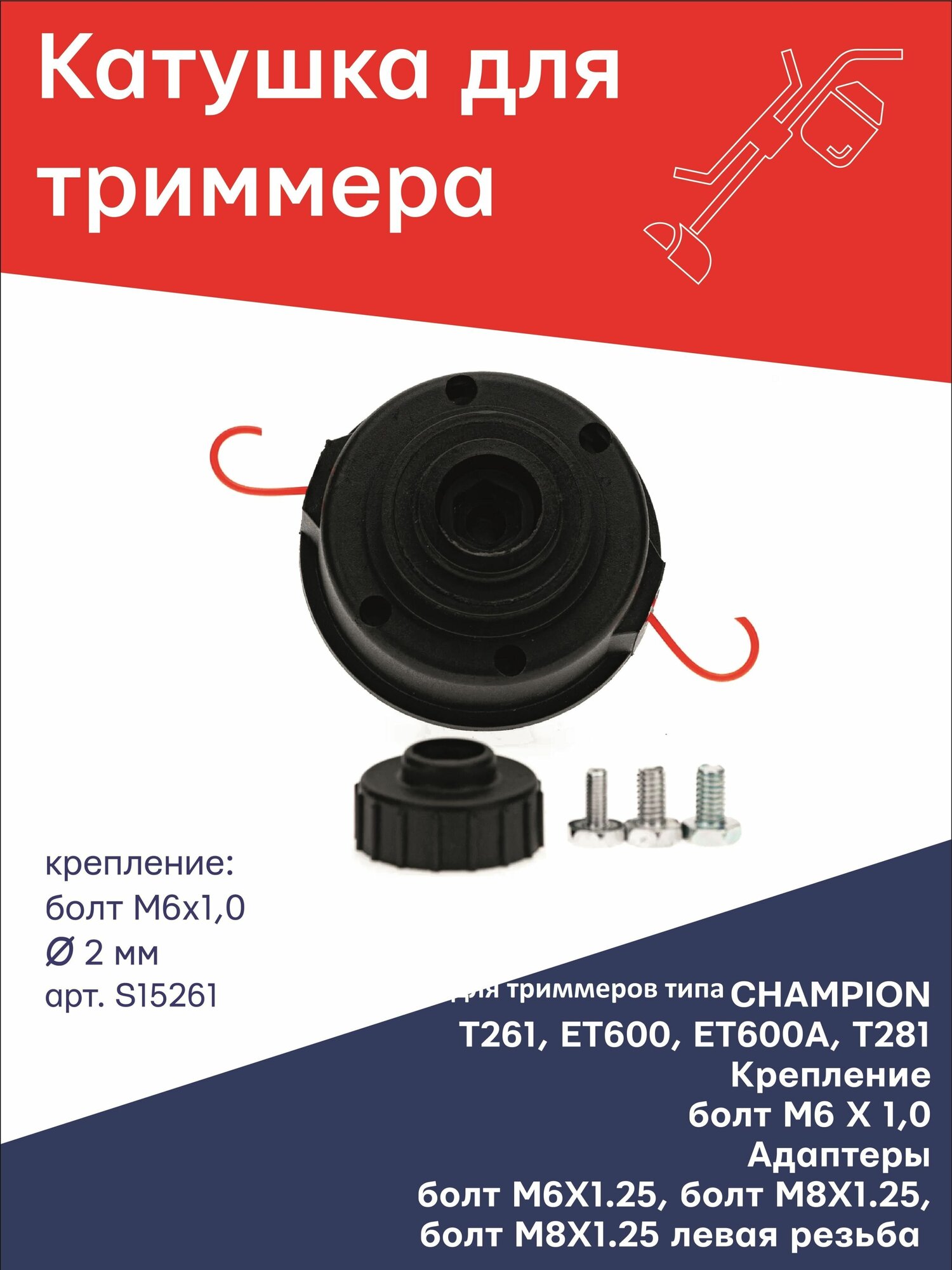 Отзывы на Катушка (головка) для триммера крепление болт М6 Х 1,0 правый + 3 дополнительных болта №10 S15261 TORGWIN