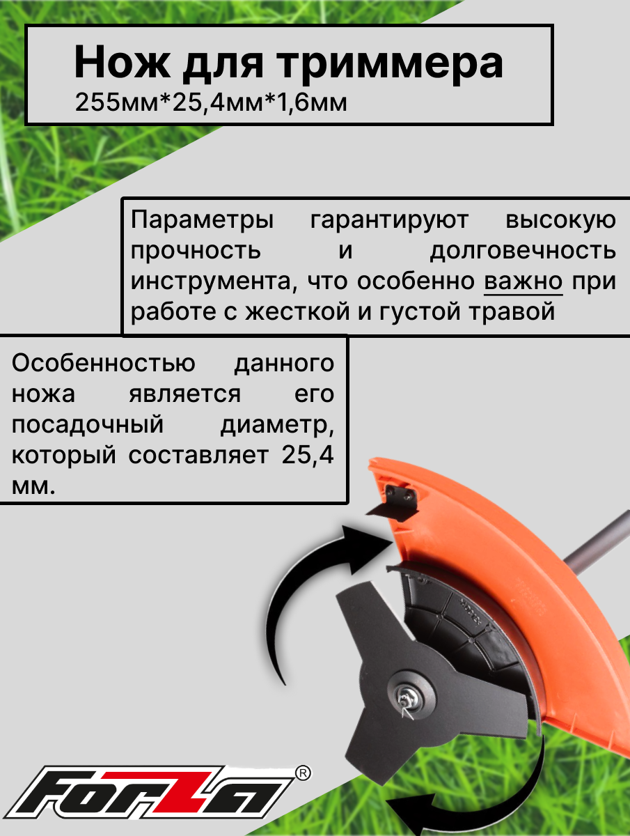 10 цен на Нож для триммера FORZA 255мм*25,4мм*1,6мм (3 лепест.)