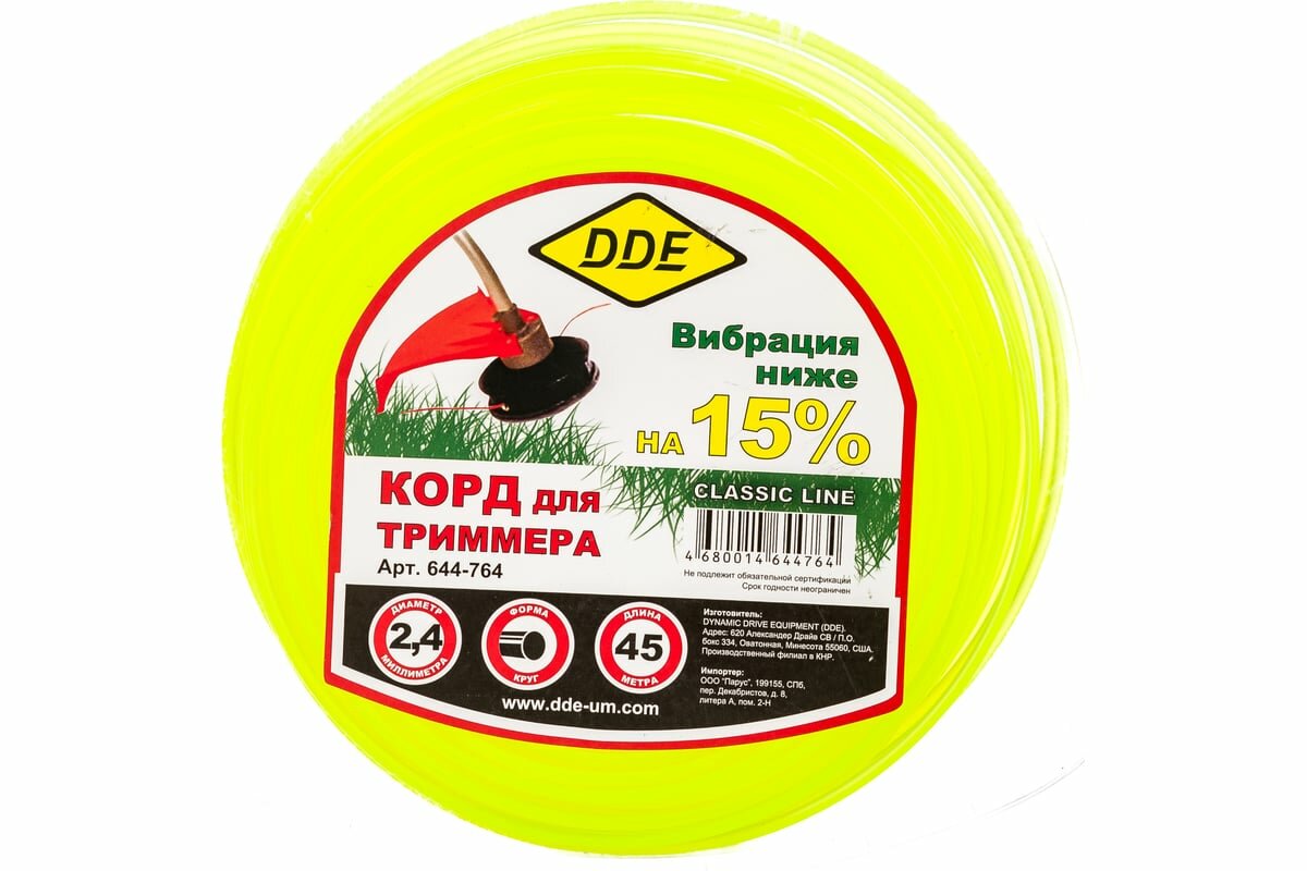 Корд триммерный (2.4 мм, 45 м, круг) DDE 644-764 информация: