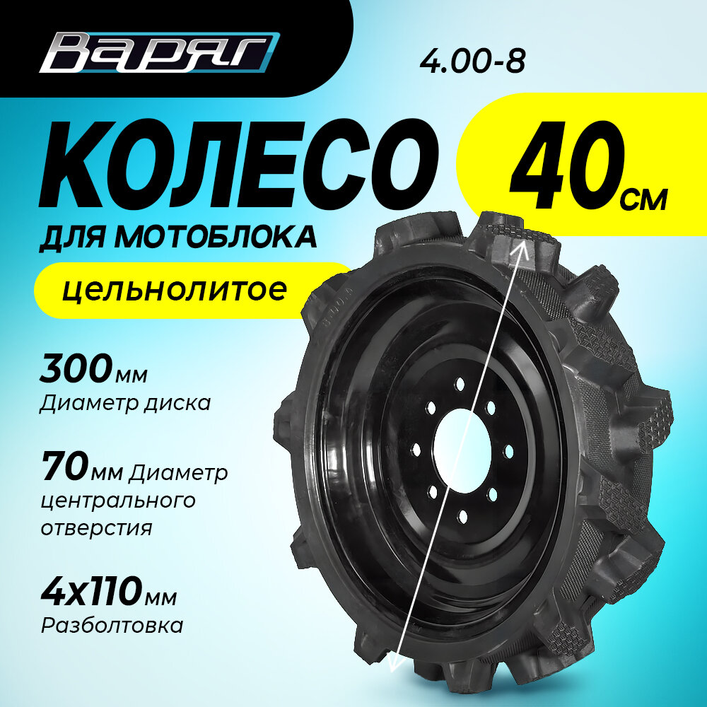Отзывы на Колесо к мотоблоку цельнолитое с амортизацией 4.00-8 варяг, диск 8 отверстий