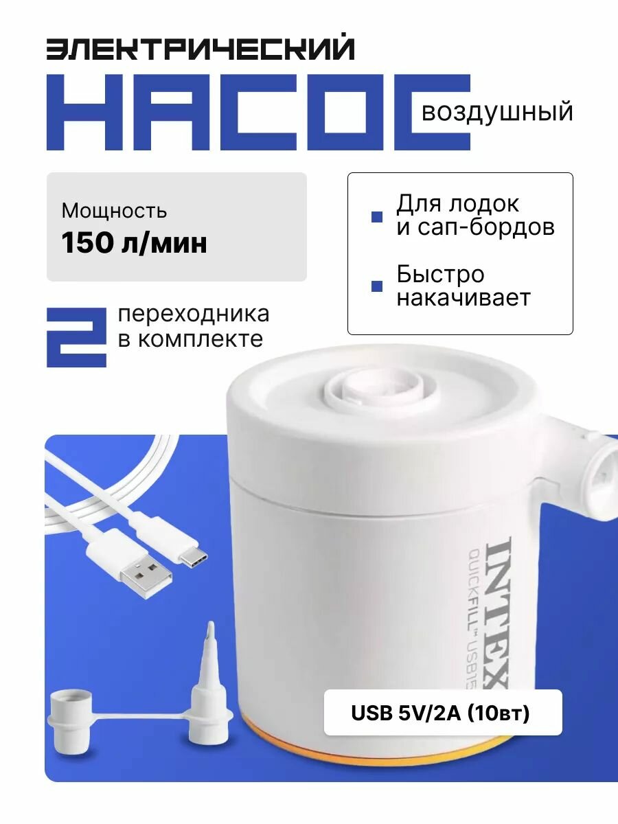 Насос электрический Intex 66616 "USB150 Air Pump" 2 насадки в компдекте информация: