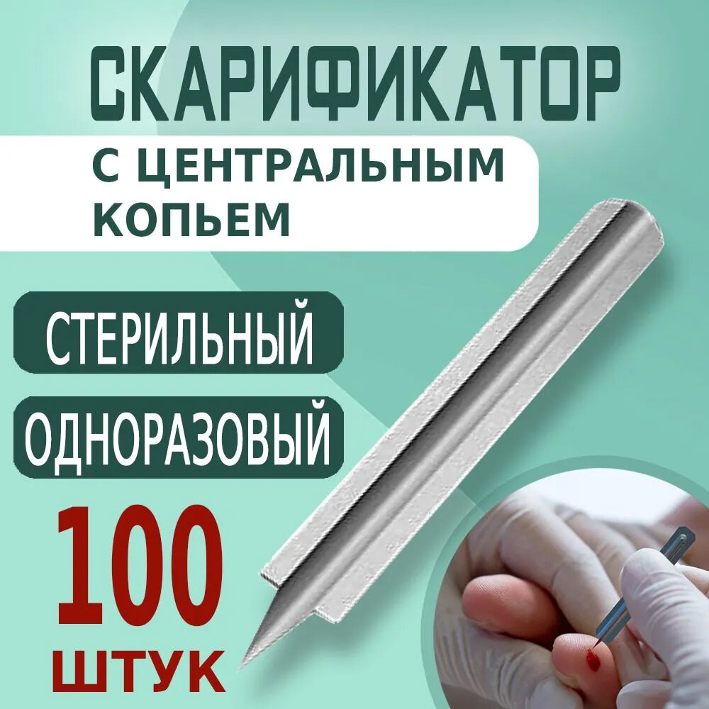 Скарификатор медицинский для забора крови стерильный с центральным копьем, 100 штук информация: