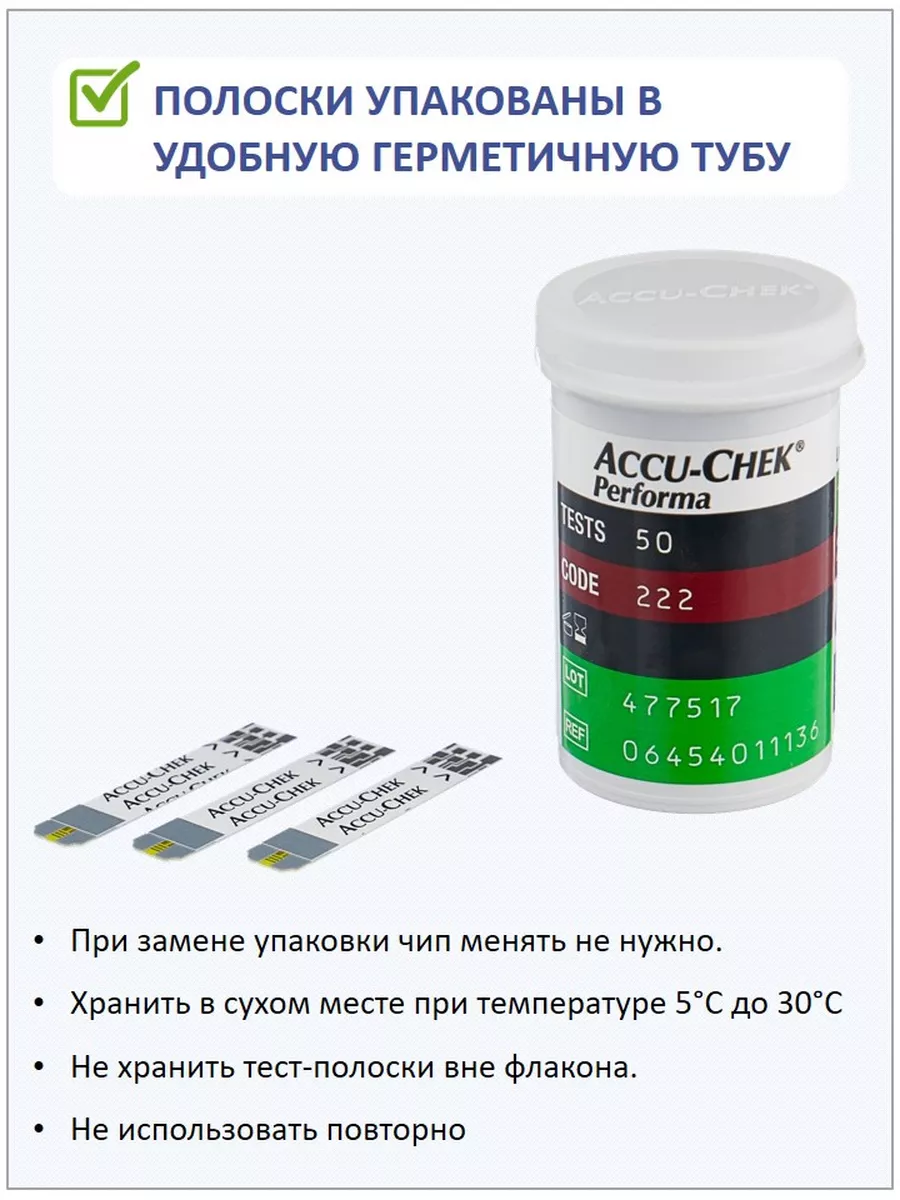 Тест-полоски Акку-Чек Перформа для глюкометра 50 шт информация: