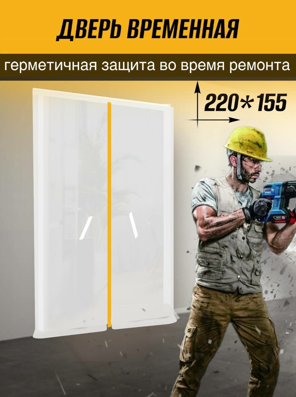 Временная пленочная дверь на молнии от пыли 220*155 1шт информация: