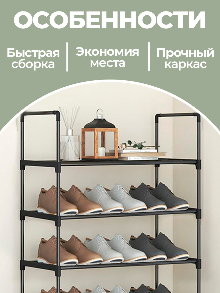 10 цен на Этажерка для обуви (обувница) в прихожую с 4 полками, нержавеющая сталь, 57х26х71 см, черная
