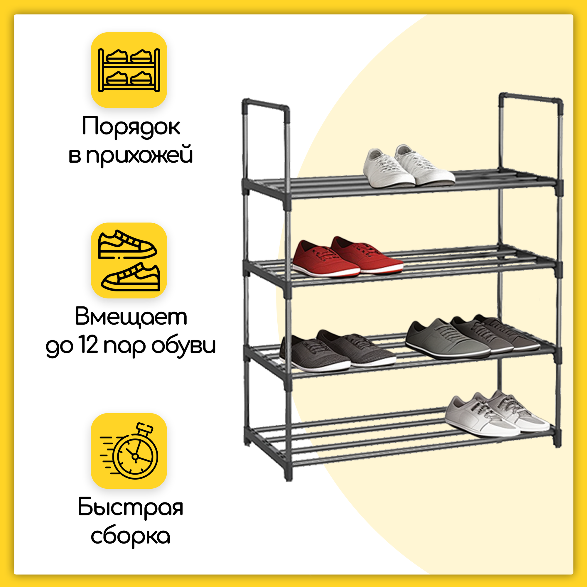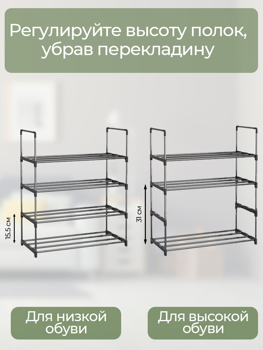Отзывы на Этажерка для обуви (обувница) в прихожую с 4 полками, нержавеющая сталь, 57х26х71 см, черная