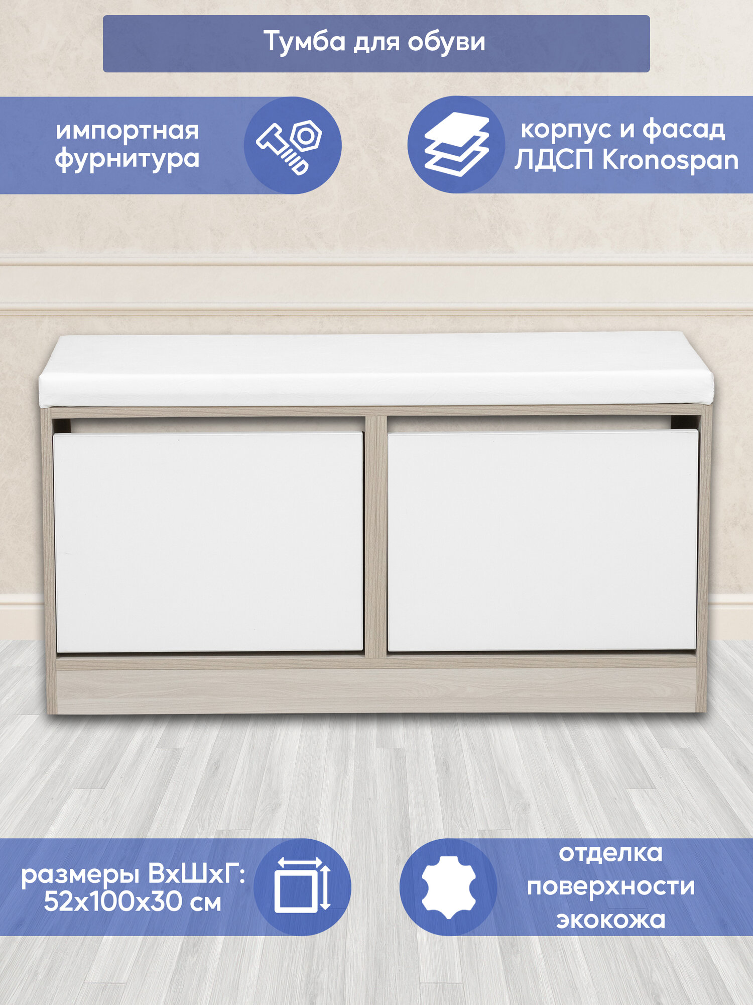 | Дополнительная информация | В прихожую, коридор, гардероб. Обувница с откидными дверцами |