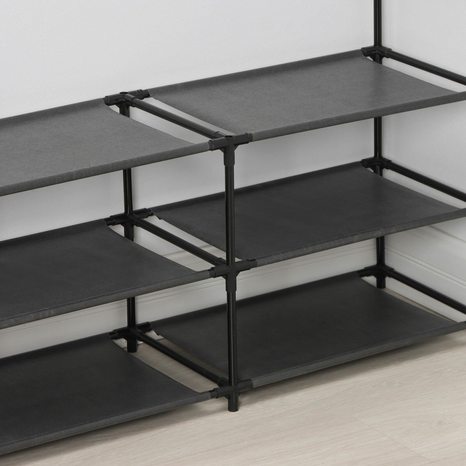 10 цен на Черная трехъярусная полка для обуви LaDоm (90х30х57 см)