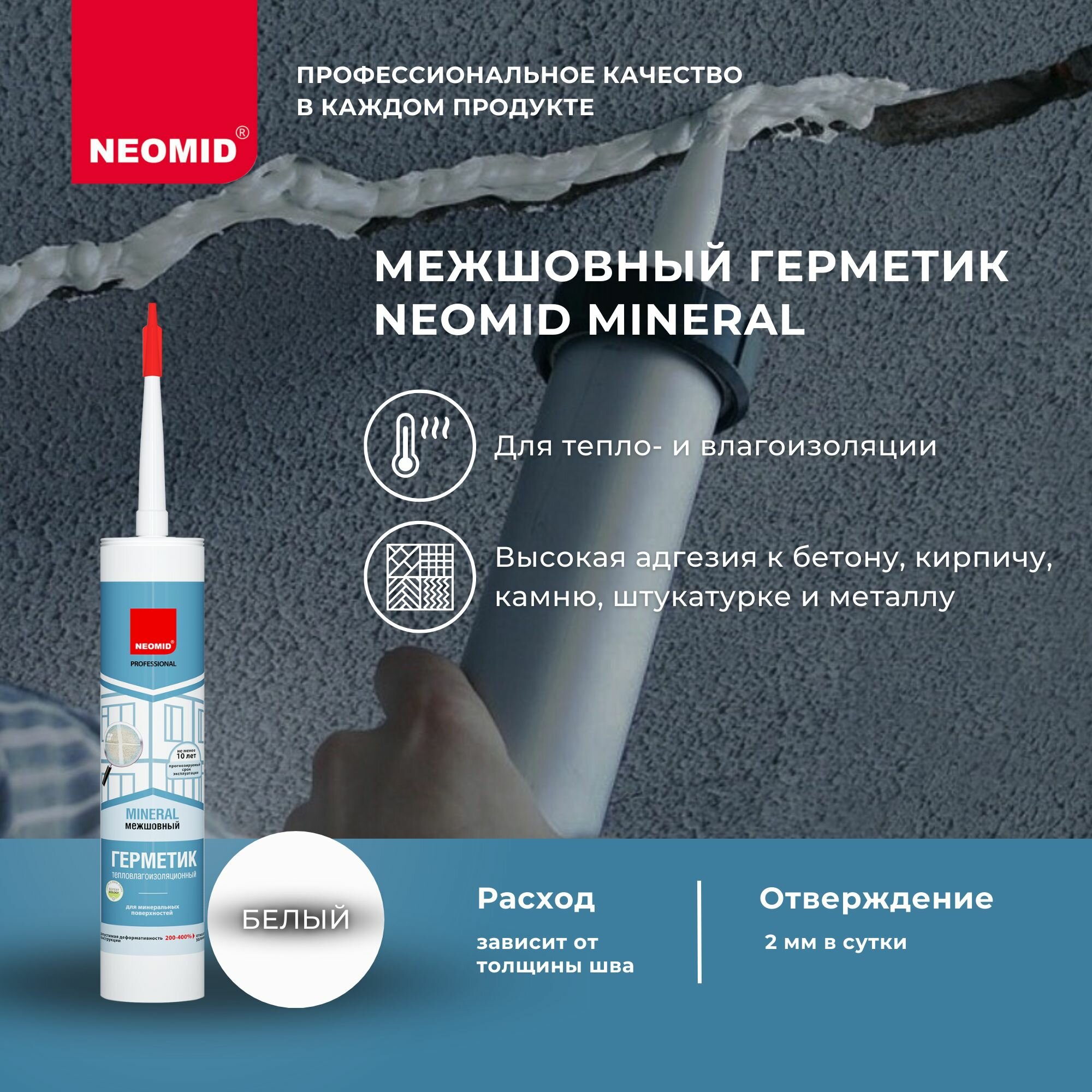 Герметик Тепловлагоизоляционный Neomid Mineral Professional 310мл Белый для Минеральных Поверхностей / Неомид Минерал. 300 ₽