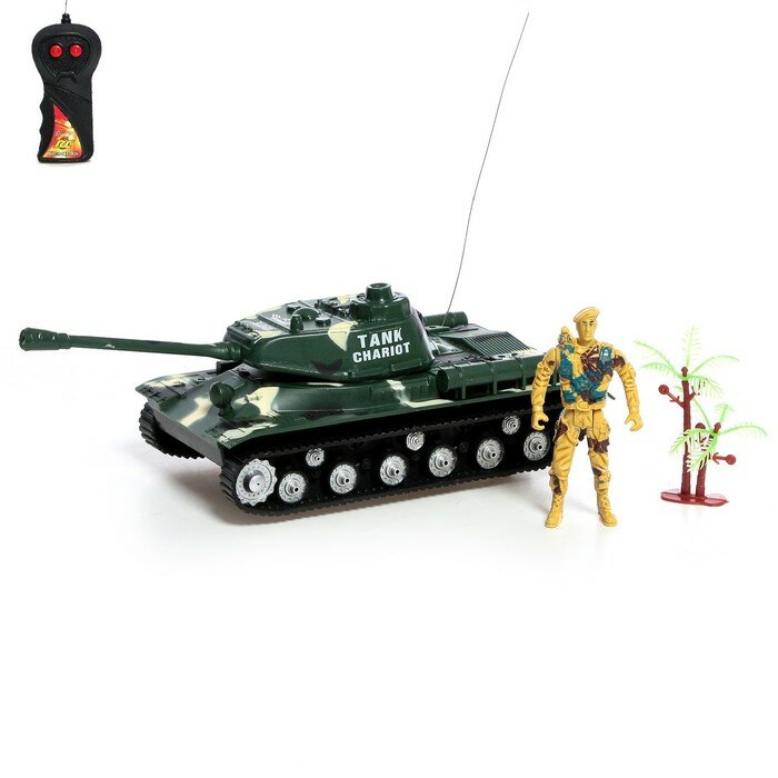10 цен на Танк радиоуправляемый «Защитник», с фигуркой солдата, работает от батареек, цвет зелёный