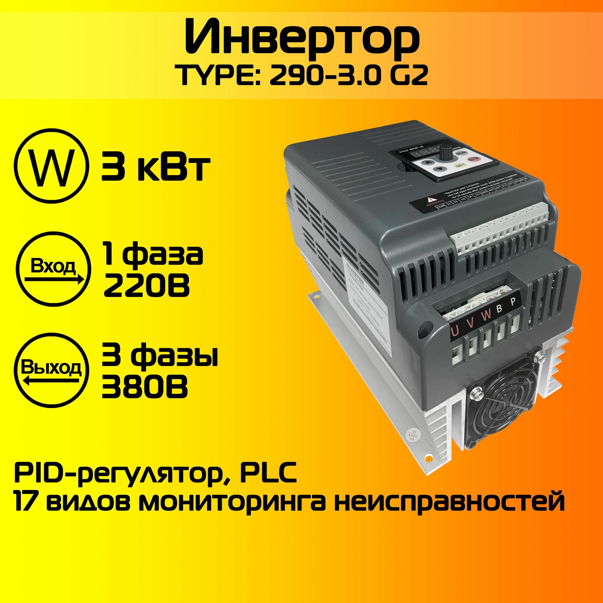 Преобразователь частоты TYPE 3.0кВт, Однофазный вход 220В Трехфазный выход 380В информация: