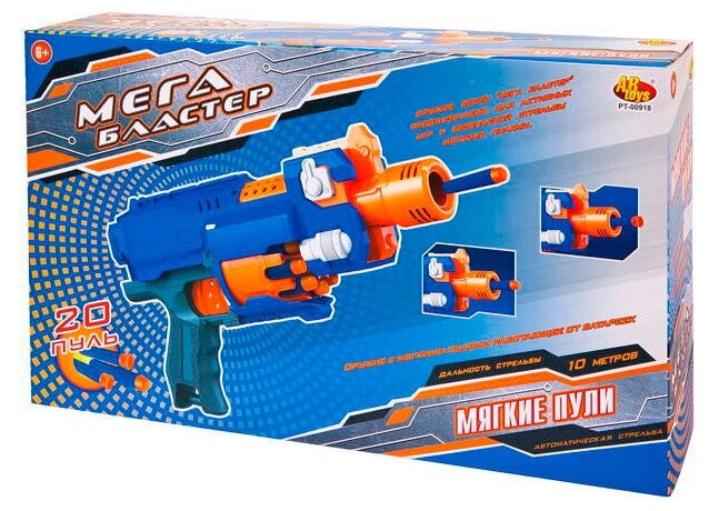 Бластер абтойс мегабластер с 20 мягкими пулями синий в/к pt-00918 3 434 ₽
