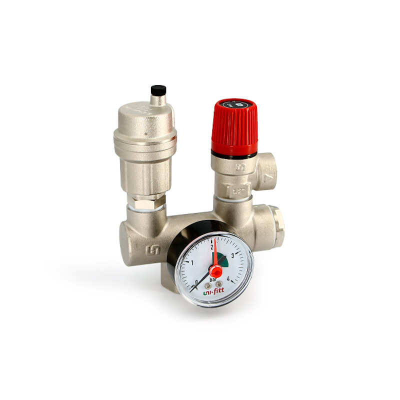 Отзывы на Группа безопасности котла Uni-Fitt Mini до 50 кВт 1" 3 бар никелированная