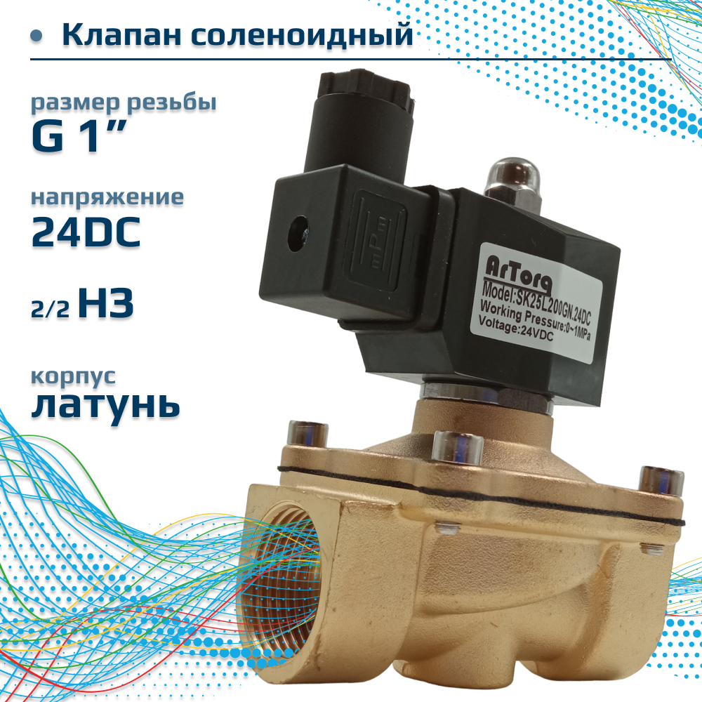 10 цен на ArTorq Соленоидный клапан прямого типа с мембраной принудительного подъёма, 2/2 нормально закрыт, G 1”, корпус латунь, SK25L200GN.24DC