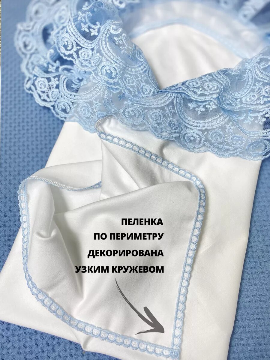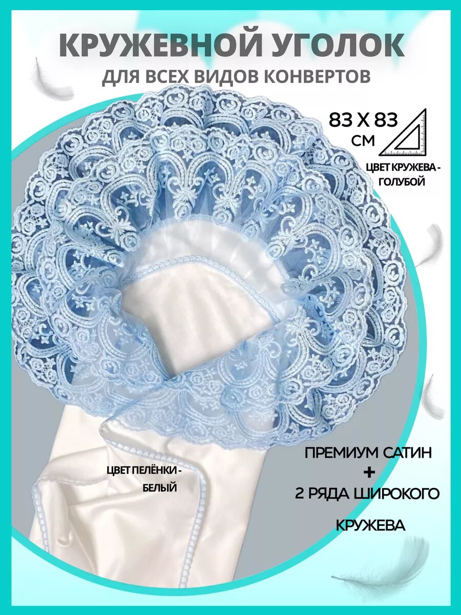 "Голубой кружевной уголок для конверта" от World of Kids для новорожденных на выписку из роддома информация: