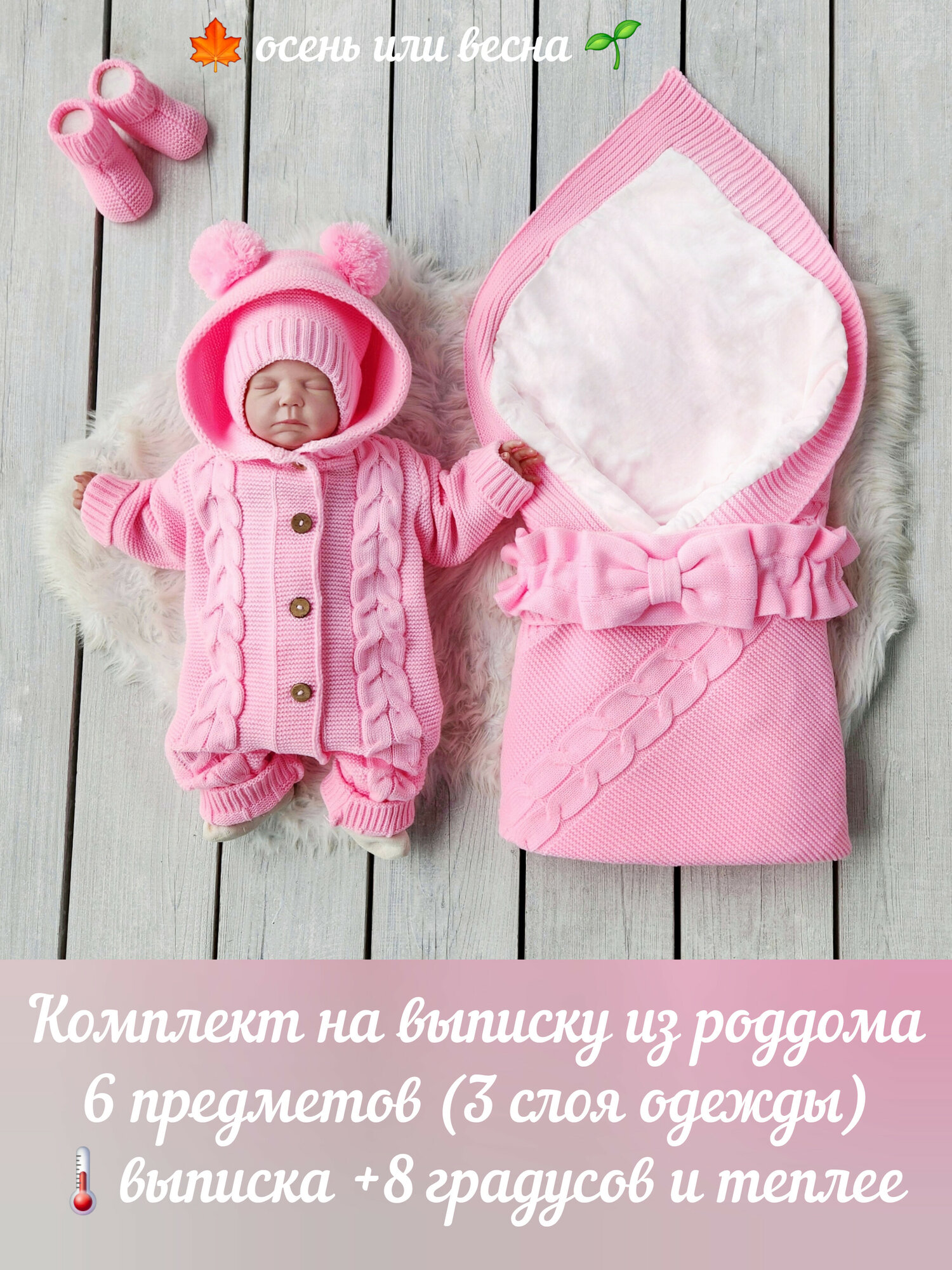 Отзывы на Комплект на выписку из роддома, 6 предметов, вязаный, размер 56-62, ярко розовый