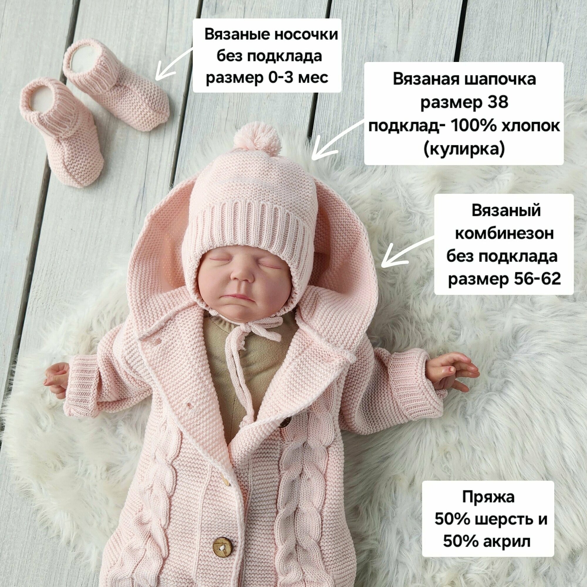 Отзывы на Комплект на выписку из роддома, 6 предметов, вязаный, размер 56-62, пудра