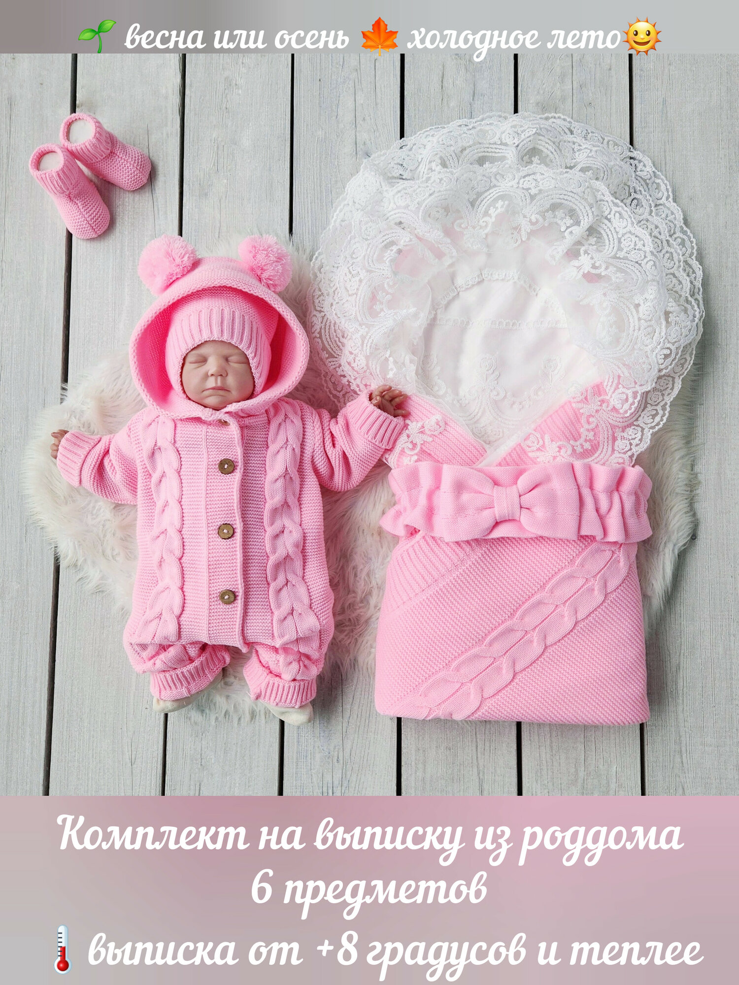 Отзывы на Комплект на выписку из роддома, 6 позиций, вязаный, размер 56-62, ярко розовый
