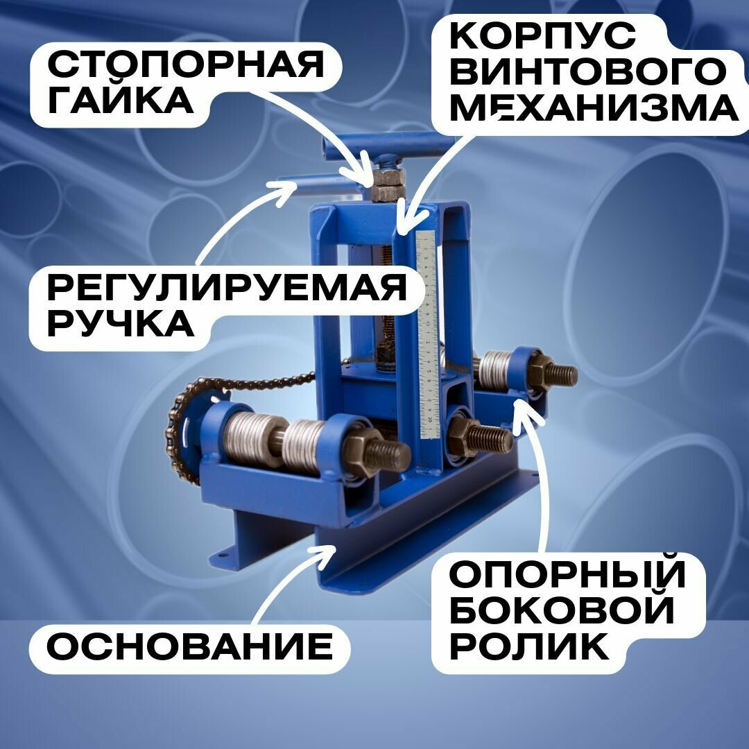 Трубогиб ручной для гибки профильной трубы "Цепной" прижимной винт с высокопрочной резьбой, упор повторяемости информация: