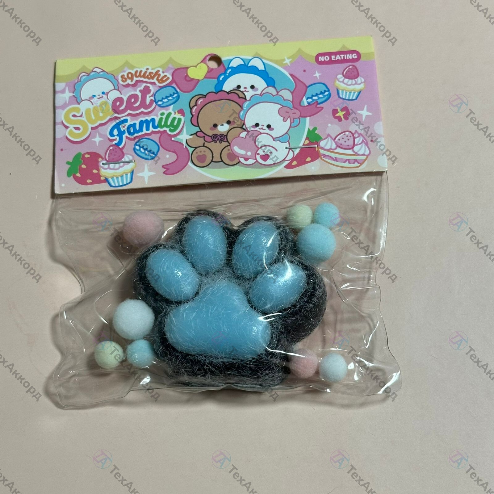 Игрушка-антистресс сквиш "Лапки кошечки", черно-голубой информация: