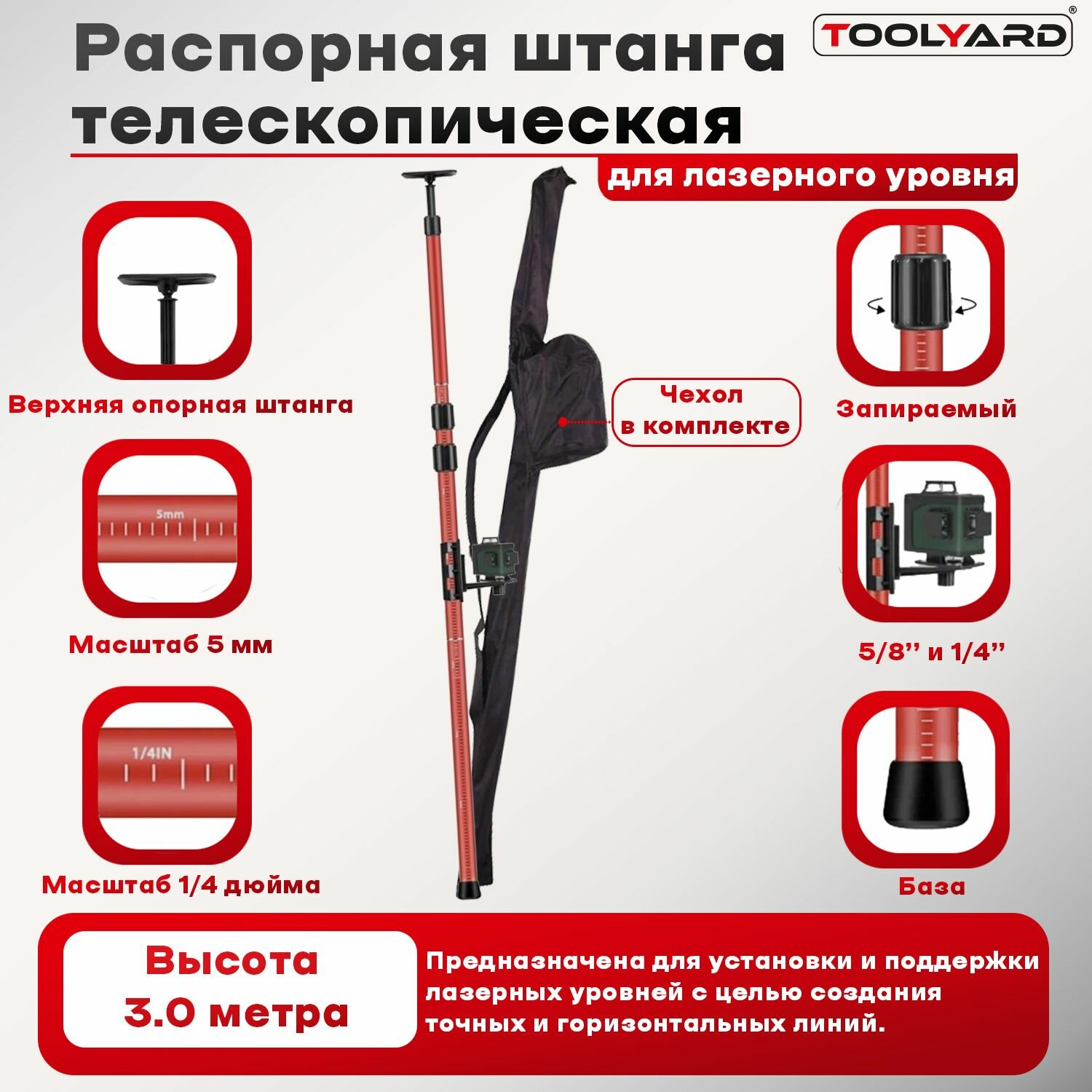 10 цен на Распорная штанга телескопическая для лазерного уровня TOOLYARD. Высота 3.0 м. Чехол