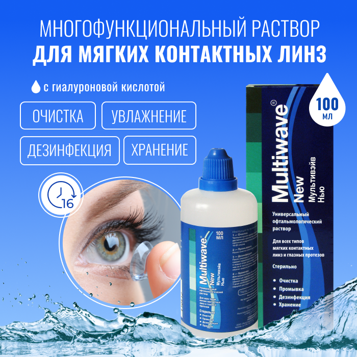 Раствор Multiwave New для ухода за контактными линзами, без контейнера, 100 мл информация: