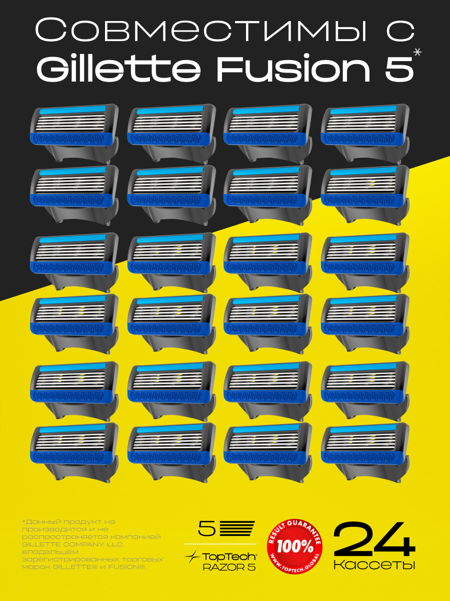 10 цен на Сменные кассеты для бритья TopTech Razor 5. Совместимы с Gillette Fusion5. 24шт.