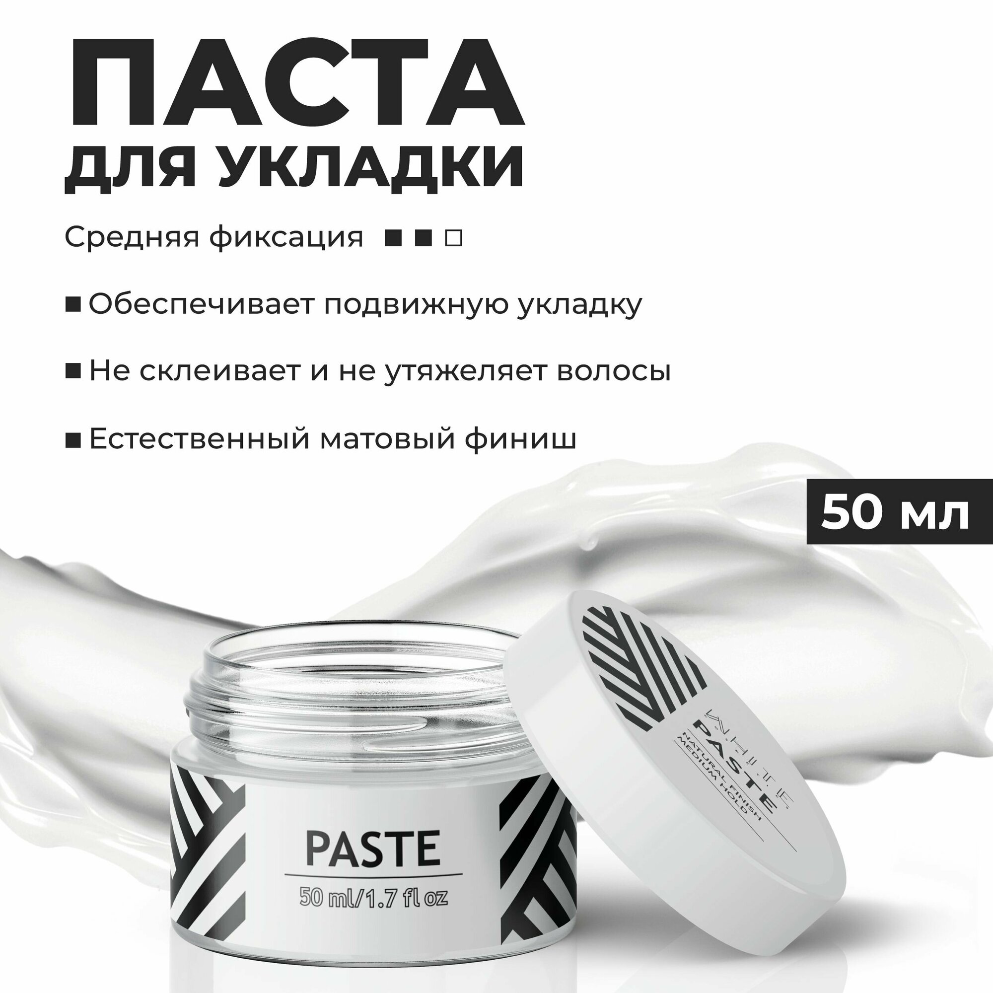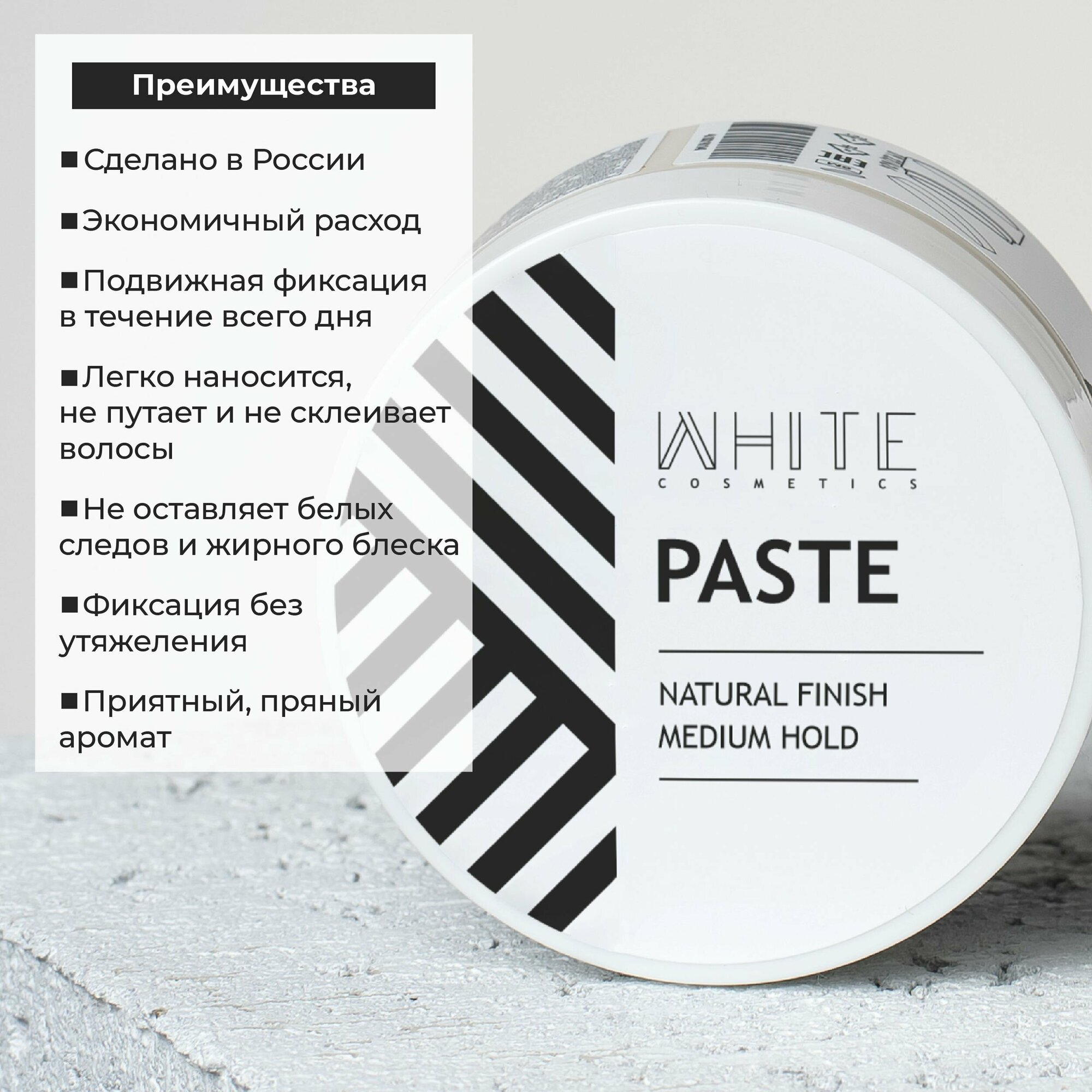 Отзывы на WHITE / Паста для укладки волос 50мл. мужская матовая моделирующая, текстурирующая, сильная фиксация