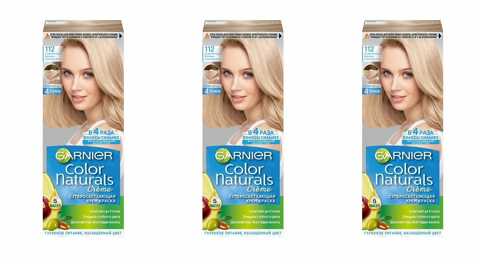 Краска для волос GARNIER Color Naturals 110мл 112 Суперосветляющий Жемчужно-Платиновый блонд, набор 3шт