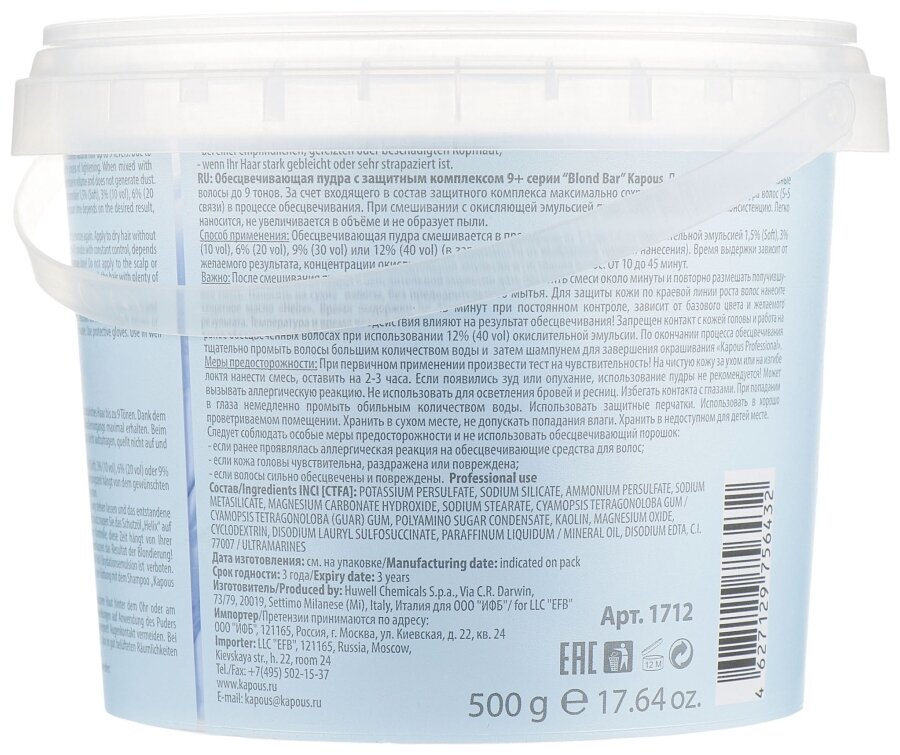 Обесцвечивающая пудра Kapous «Blond Bar» с защитным комплексом 9+, 500 г информация: