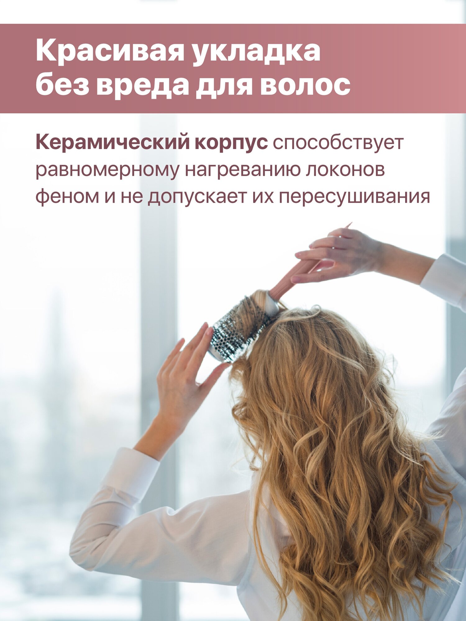 | Дополнительная информация | Немного высушите голову после мытья естественным путем, расчешите локоны, возьмите расческу для укладки волос феном, отделите небольшую прядь и приложите брашинг керамический к корням. Далее возьмите фен, включите теплый воздух и двигайтесь вниз вместе с расческой для выпрямления волос, выбирая степень укладки: для простого выпрямления слегка закручивайте щетку для укладки волос, а для получения «голливудских» волн удерживайте расческу круглую для укладки немного дольше на локонах и увеличивайте степень завивки. |