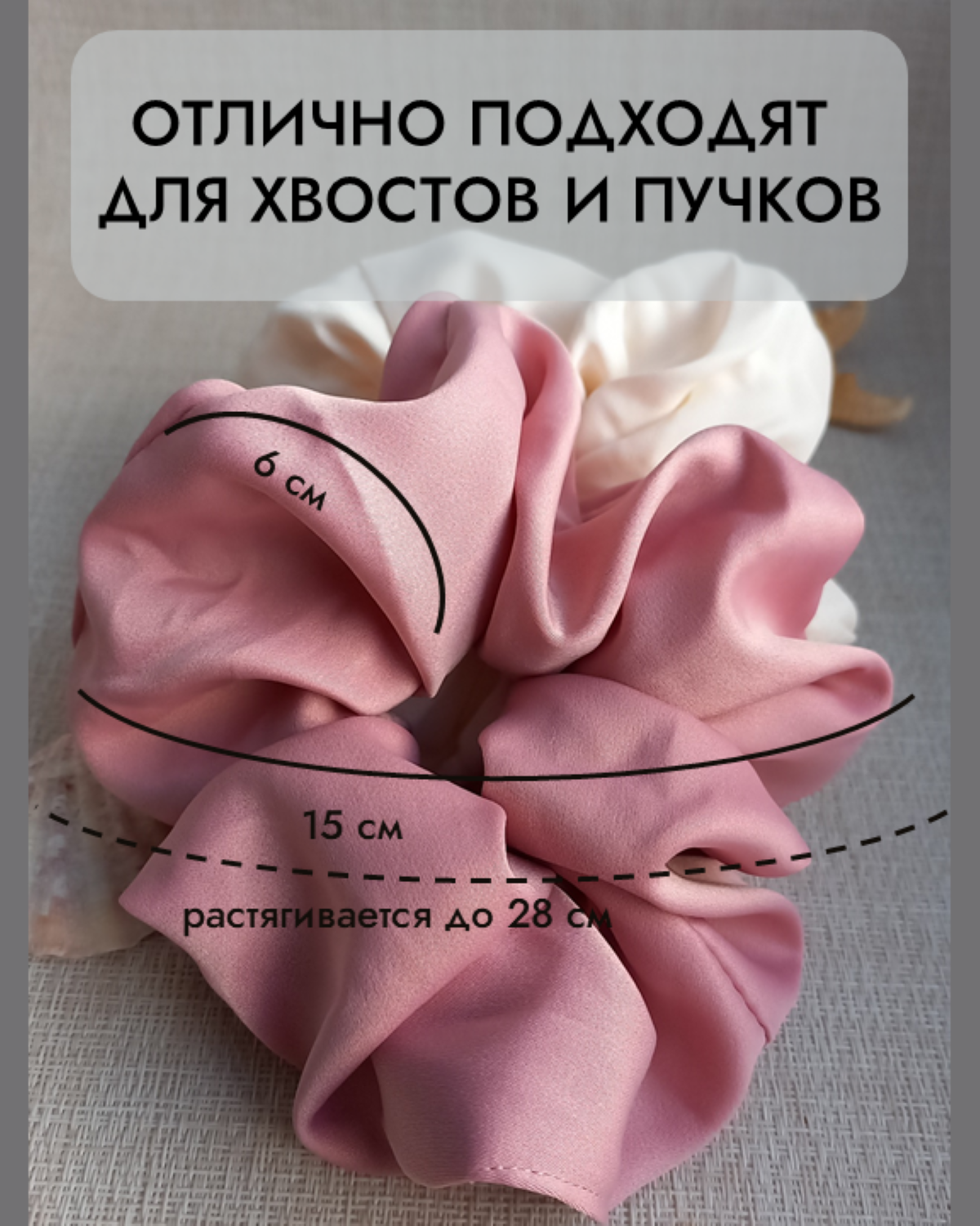 2 большие резинки для волос из искусственного шелка, розовая и бело-бежевая информация: