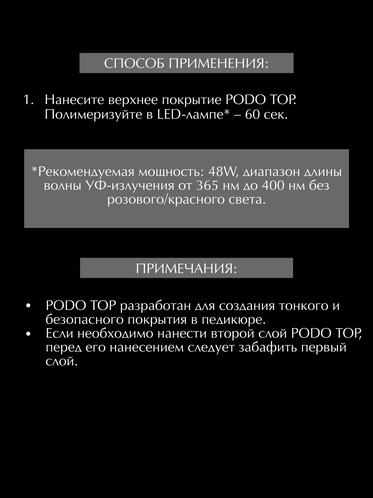 Топ для педикюра без липкого слоя PODO TOP LiNTO жидкой консистенции, прозрачный, стойкий глянцевый блеск, 10 мл информация: