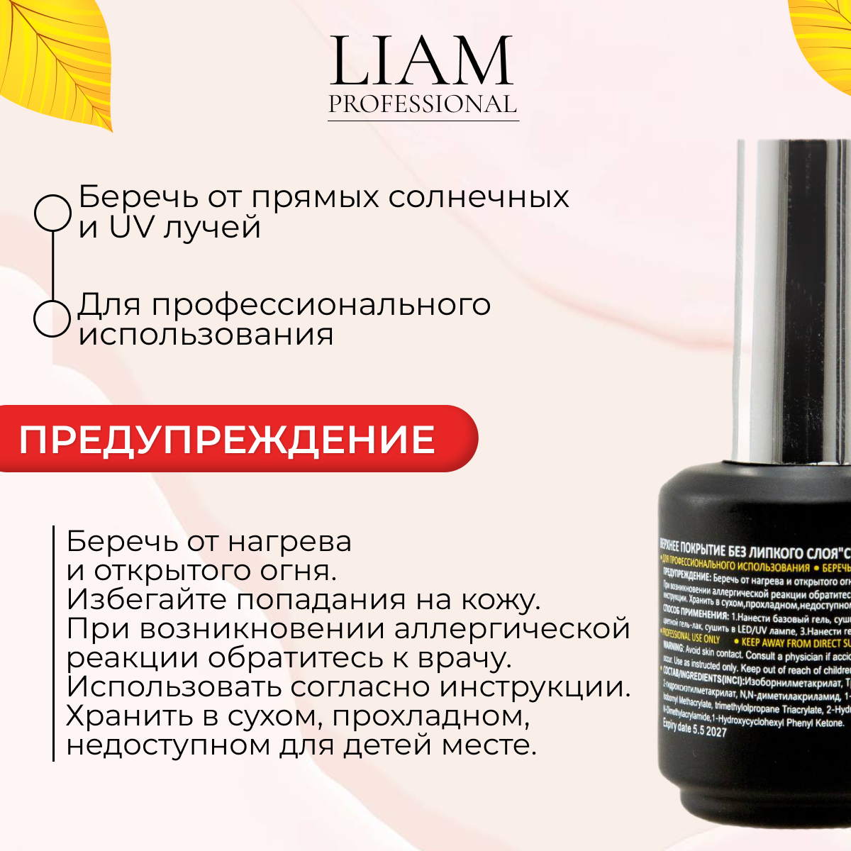 Liam professional Топ для гель лака без липкого слоя, 15 мл информация: