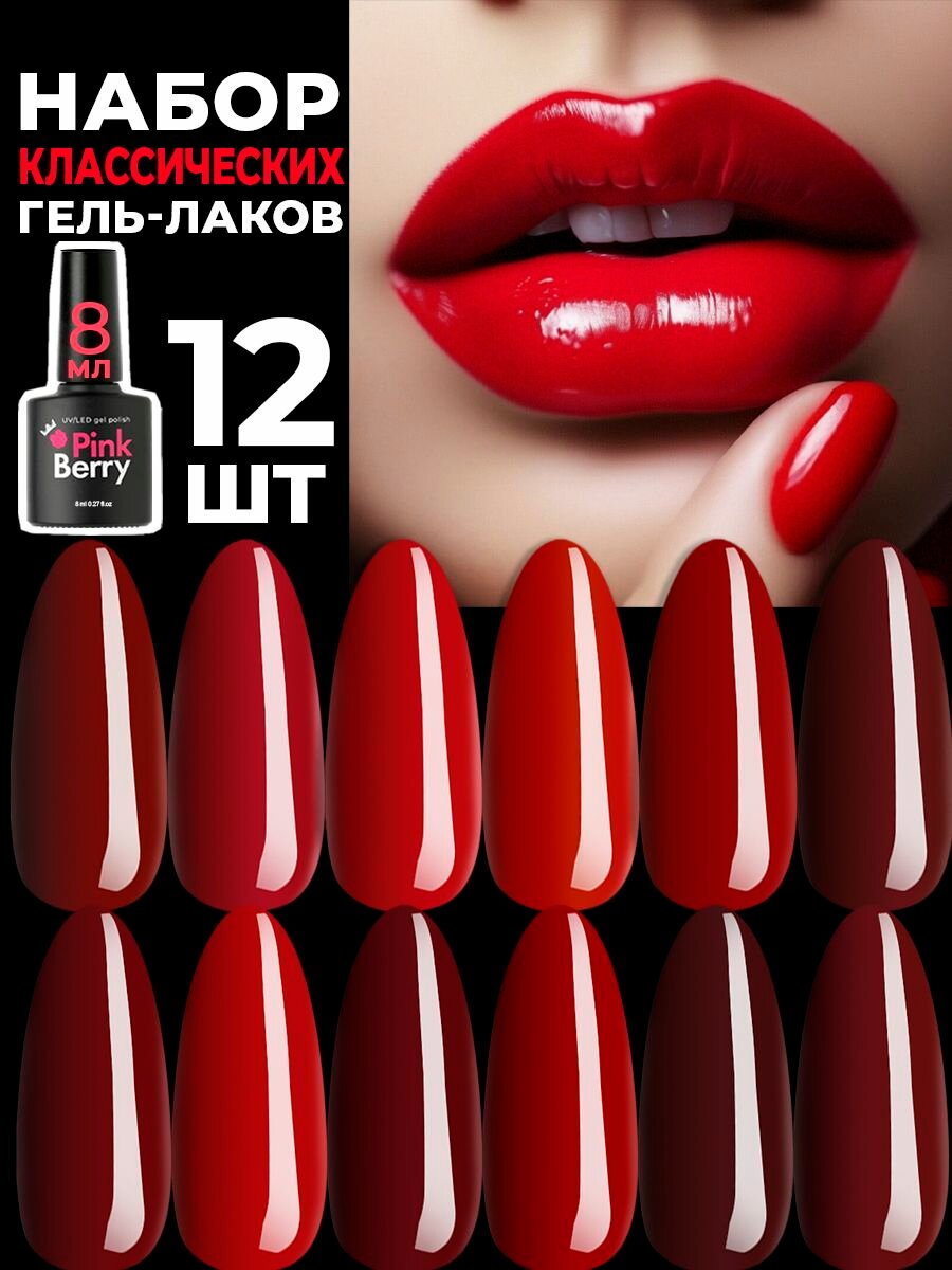Набор красных гель-лаков для ногтей от Pinkberry из 12 цветов по 8мл 1 740 ₽