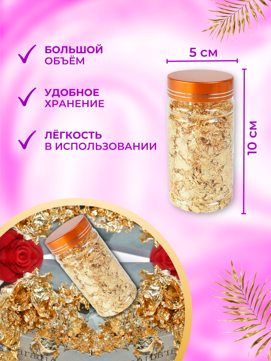 10 цен на Золотистая поталь в хлопьях для творчества и маникюра, имитация сусального золота