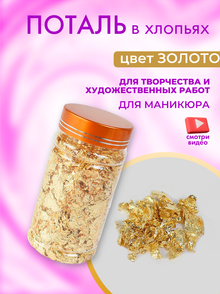 Характиристики этого товара не найдены!Отзывы на Золотистая поталь в хлопьях для творчества и маникюра, имитация сусального золота