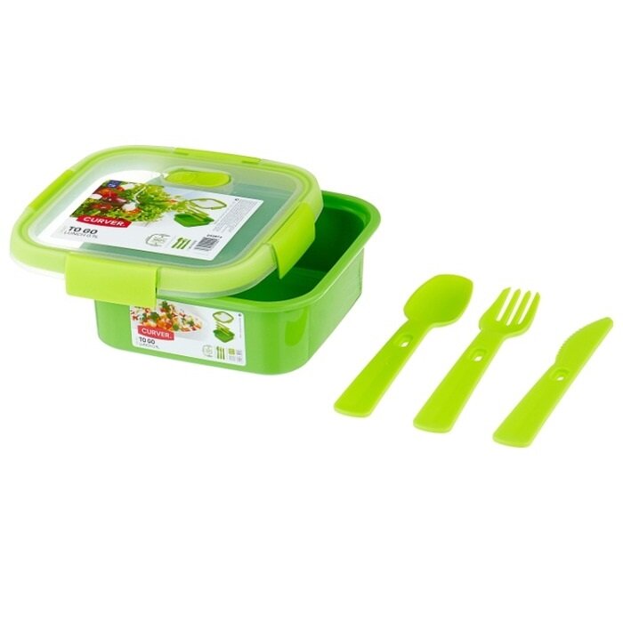 Контейнер пищевой с приборами Curver To Go 00949-Y32-00 0,9л зеленый информация: