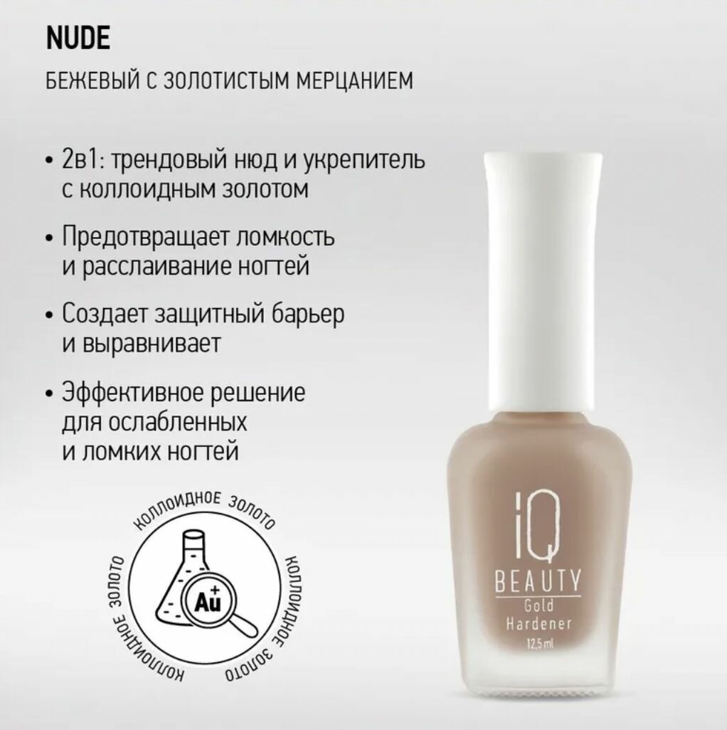 10 цен на IQ Beauty Укрепитель для ногтей с коллоидным золотом Gold Hardener Nude 12,5мл