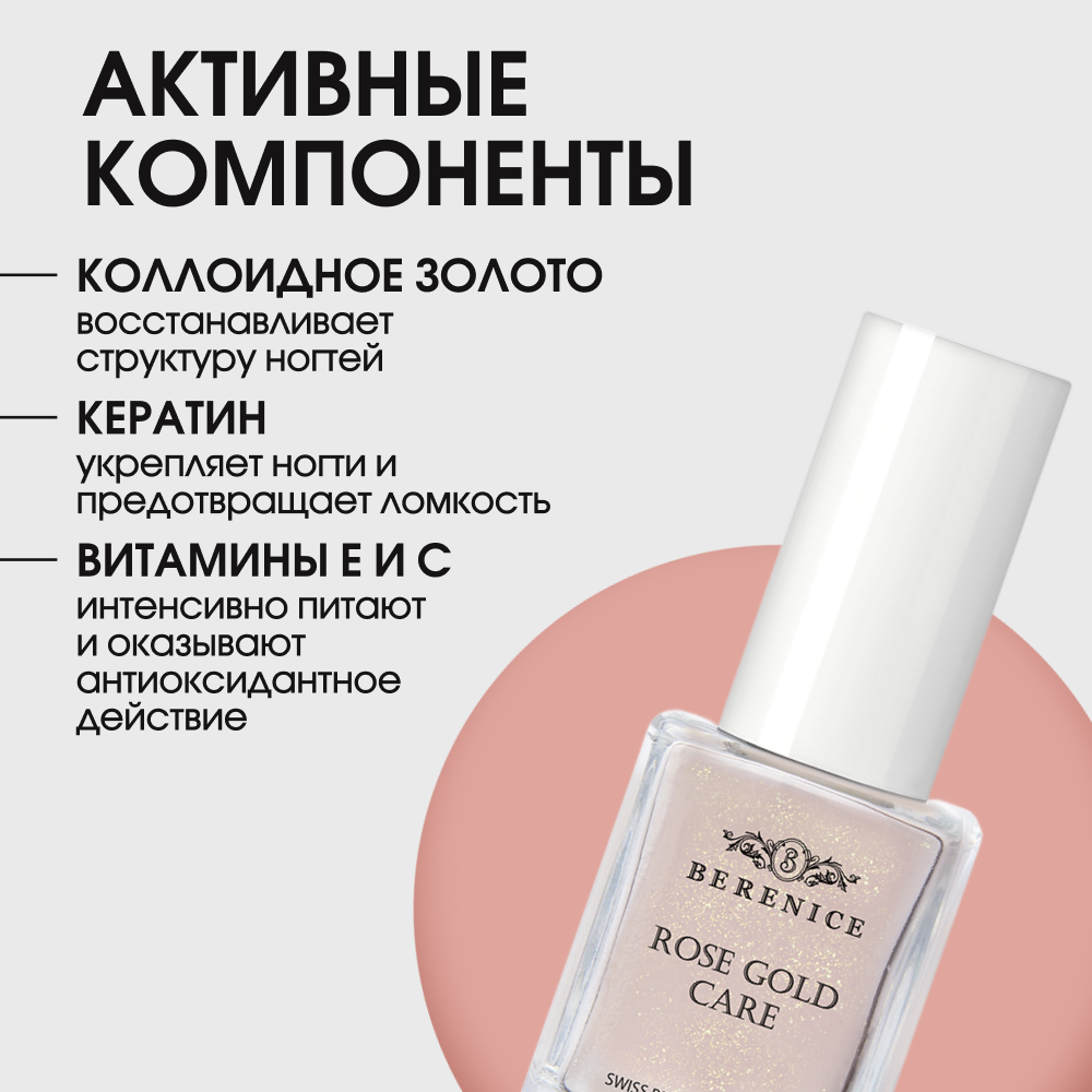 10 цен на Укрепляющее средство для ногтей с коллоидным золотом "Rose Gold Care" BERENICE 16 мл