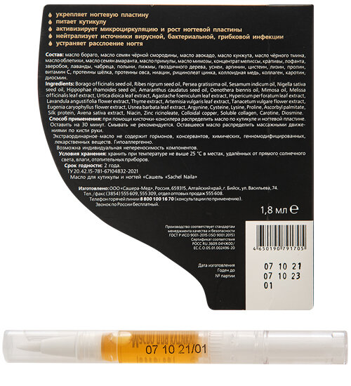 Сашель Naila масло для кутикулы и ногтей, 1,8 мл MED-01/108 113-85675 информация: